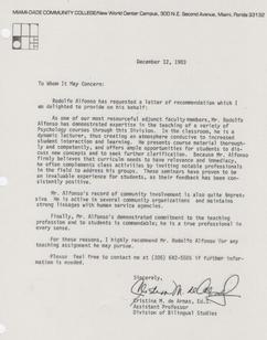 LETTERS OF REFERENCES FROM MIAMI DADE COMMUNITY COLLEGE